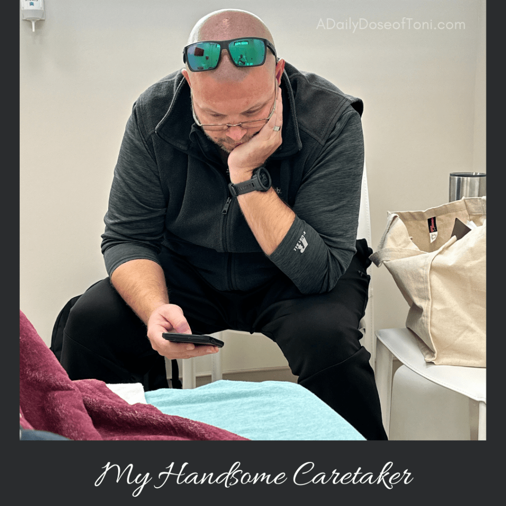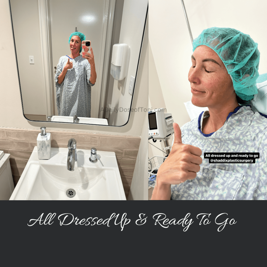 As I geared up for my surgery I had the unfortunate luck of getting a sinus and ear infection thanks to the drainage I had from our lovely amounts of pollen…thankfully, it was far enough out from my surgery I was able to get an antibiotic and steroid and pushed that infection right on out almost as fast as it came on! Finally surgery day (May 3, 2023) was here. My hubby was my designated person that day, so with a bright and early showtime of 6:15 a.m. we arrived at the surgery center (which is actually also Dr. Shaddix’s medical office and also has a spa). I dressed in a zip-up jacket and pajama pants, I was making sure I was going to have the comfiest clothes when I left and with it being so early I didn’t feel the need to get out of my PJs.