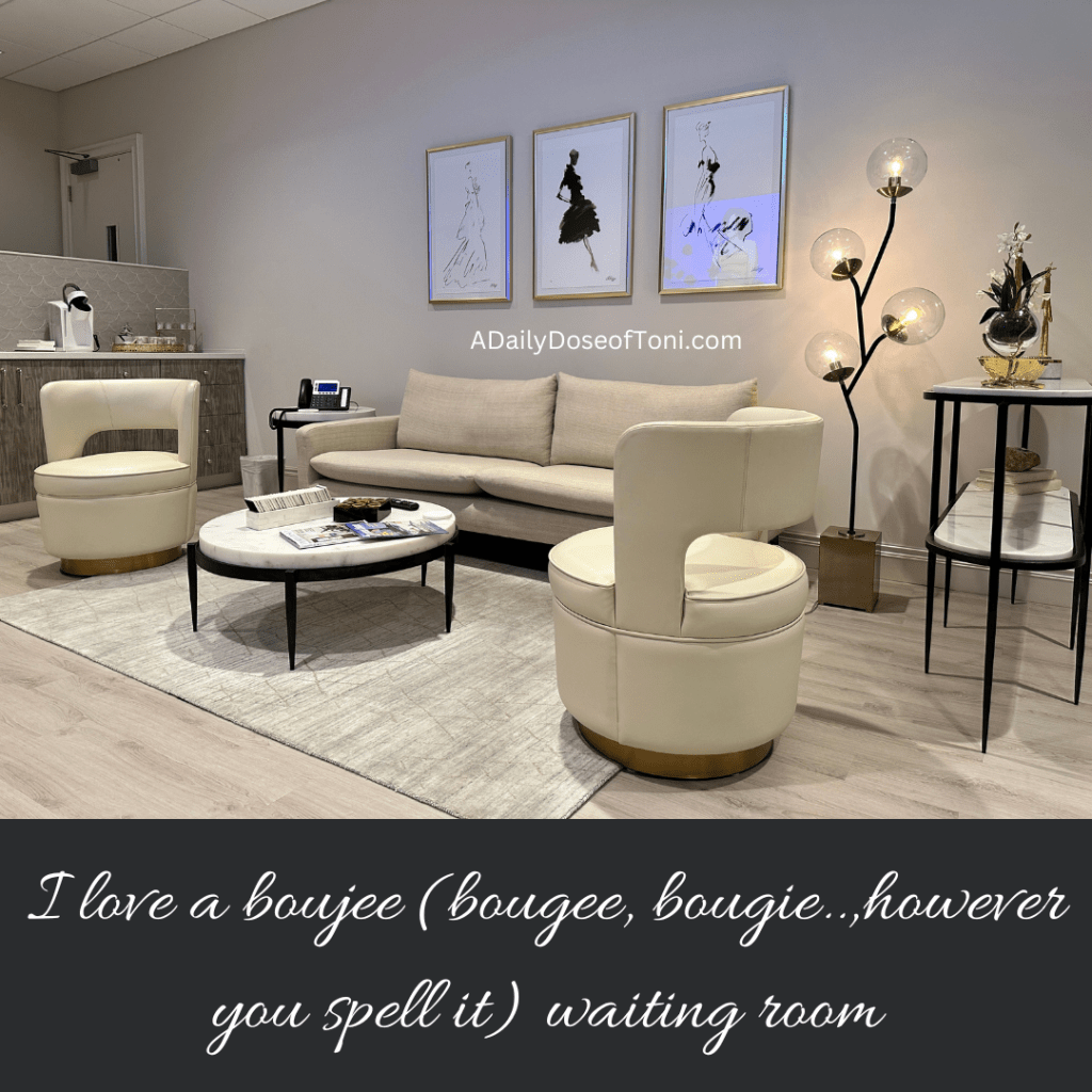 I loved the waiting room on the surgical center side (of course the main office part is just as fancy, so no complaints there…all the fanciness was making me wish I had went into plastic surgery as a career). Check out the fancy waiting area..