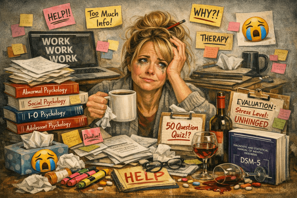 And then, if you’re me, you immediately ruin it by enrolling in four psychology classes while working full?time and occasionally sacrificing a Saturday like it’s a ritual offering to the gods of capitalism. Because apparently I hate myself, so why not add academic chaos to the emotional Jenga tower that is my mid?40s.